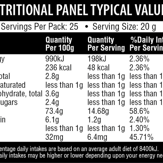 The correct serving size is 20g/2 scoops 1-2 times a day on an empty stomach.