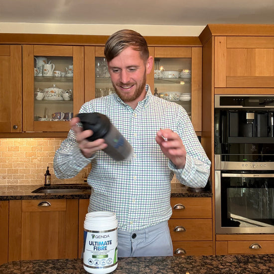 - Mix two level scoops of Qenda Ultimate Fibre (or one level scoop for children under 12 years) in 350-400ml of water in a shaker bottle once or twice daily.